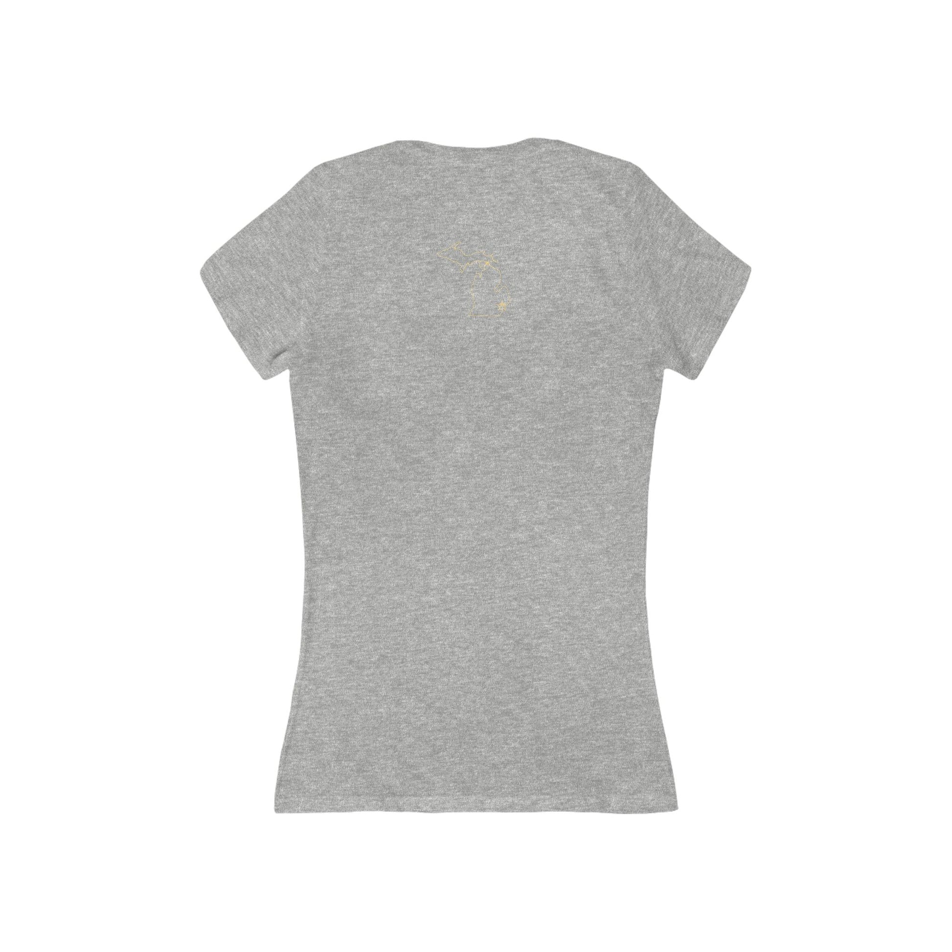 This is a classic custom women's deep v-neck t-shirt that fits great and feels better. Well-loved, this favorite strikes a modern feminine fit. Additionally, it's comfortable - a must-have in every woman's wardrobe. Side seams maintain fitting over time. The shoulders have tape to ensure durability. The collar has ribbed knitting for better elasticity.